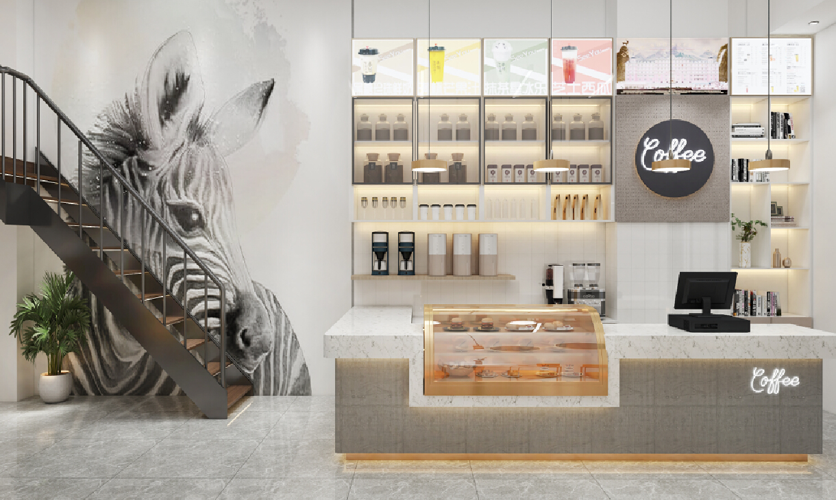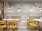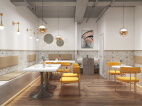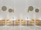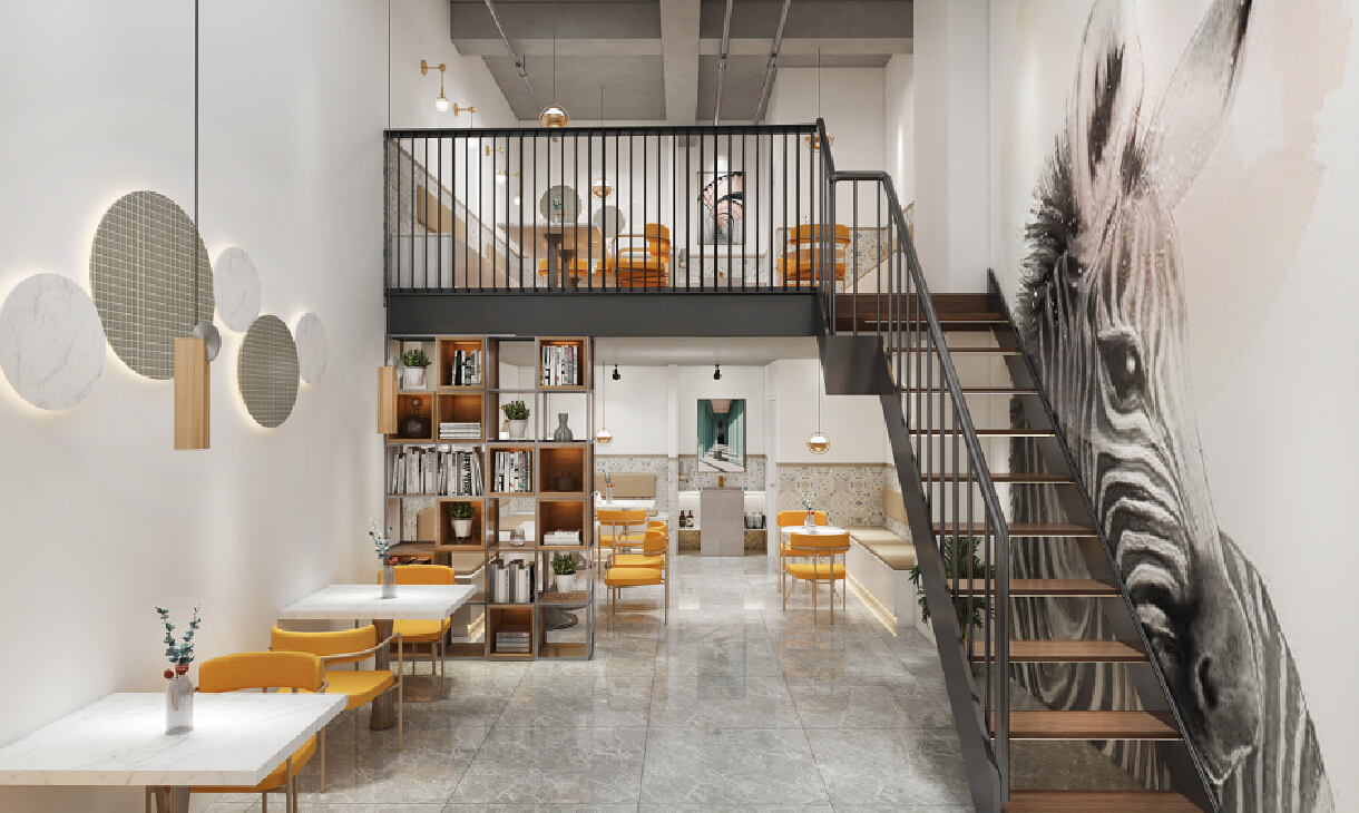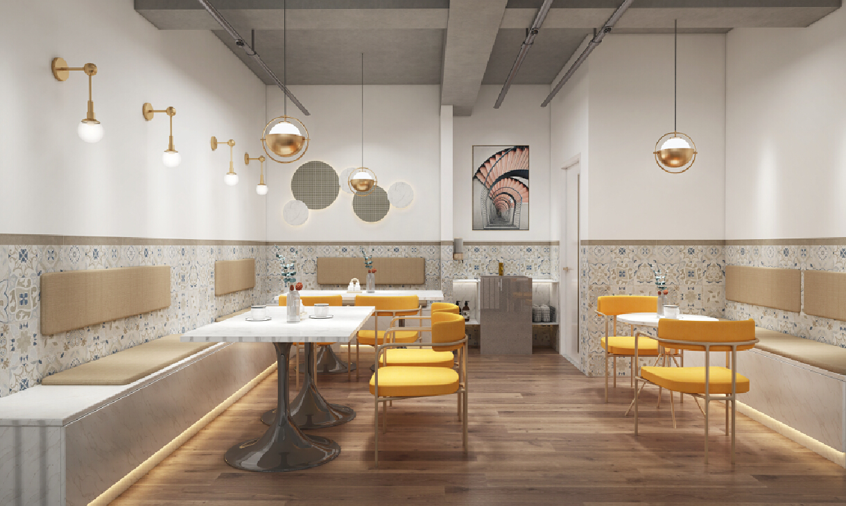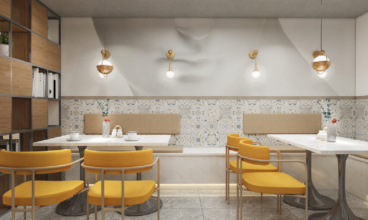 针对甜品店的客户群体,将时尚现代、摩登与节奏感融入简单开放的空间里,白色餐桌、暖黄灯光、颜色跳跃的餐椅,明快的色彩在简练的线条交错碰撞出自由的构想,配合店铺甜美温馨的走向,搭配出活力而不刺眼的感觉