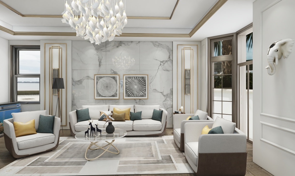 每个空间至少2张效果图+1张全案全景图展示,方案描述完整,所有空间需命名。