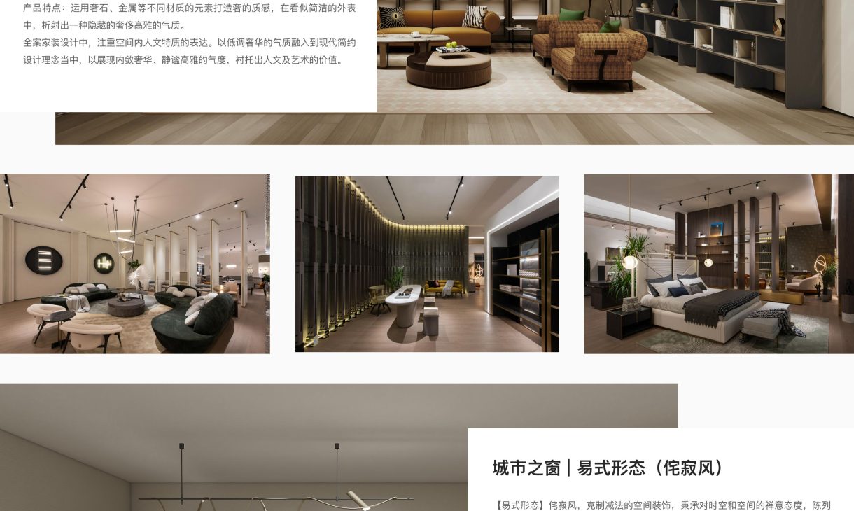 每个空间至少2张效果图+1张全案全景图展示,方案描述完整,所有空间需命名。