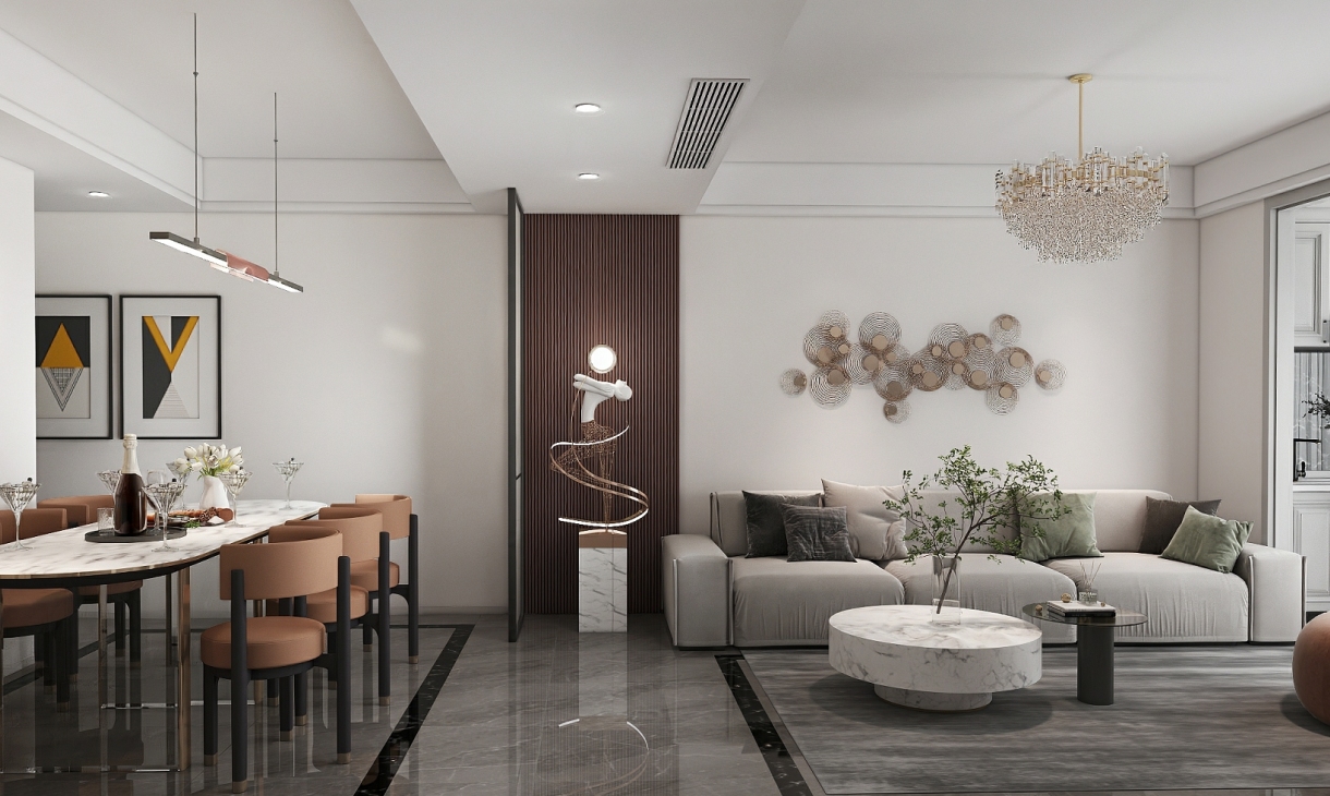 每个空间至少2张效果图+1张全案全景图展示,方案描述完整,所有空间需命名。