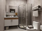 卫生间采用干湿分离,洗手台的色彩搭配与整个空间统一,镜子后方可作为收纳使用。