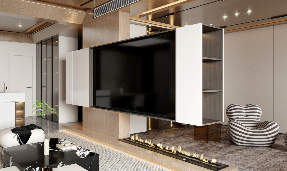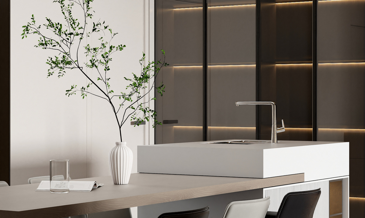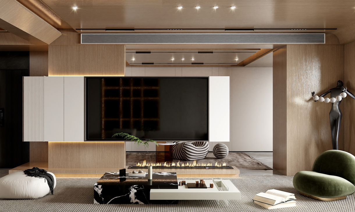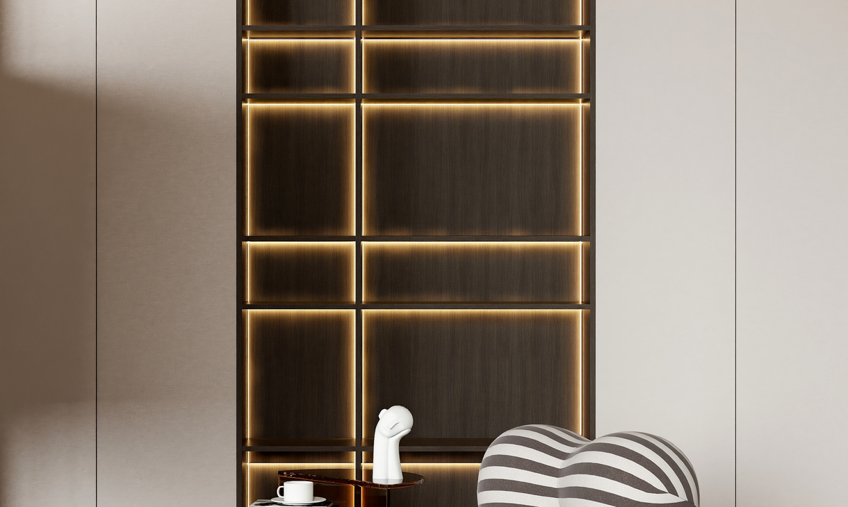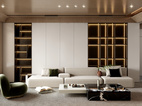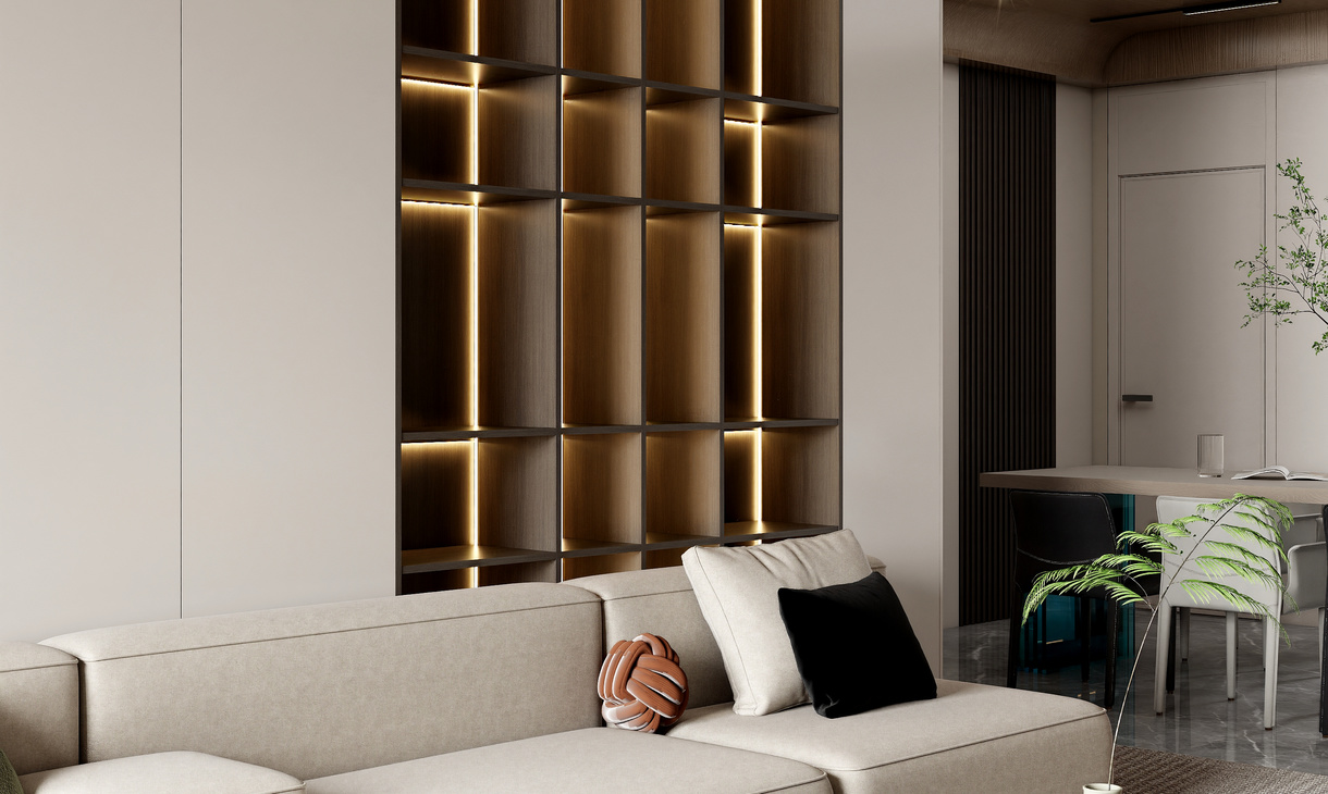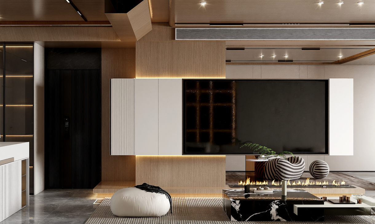 在客餐厅空间中,以陈设艺术品的穿插描绘出优雅情绪与极具张力的空间语言,细腻诠释着一个时髦轻奢诗意的舒适空间。