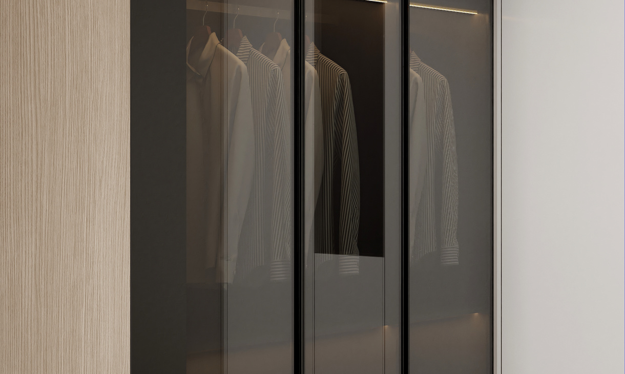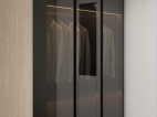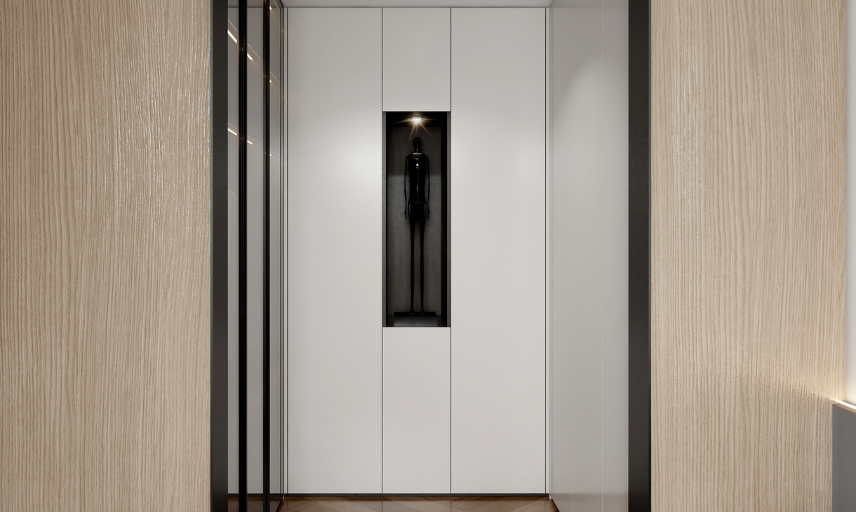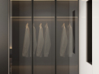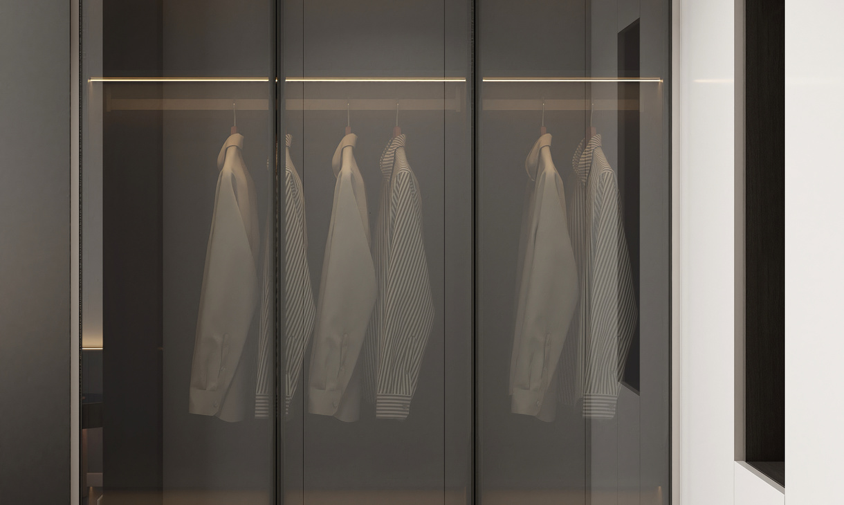 经典轻奢卧室除了灰色的浮躁,搭配纤细黄铜的卧室灯,为睡眠环境增添格调与质感,唯美大气。将卧室与卧室相邻的衣柜做成了一个嵌入式衣帽间。