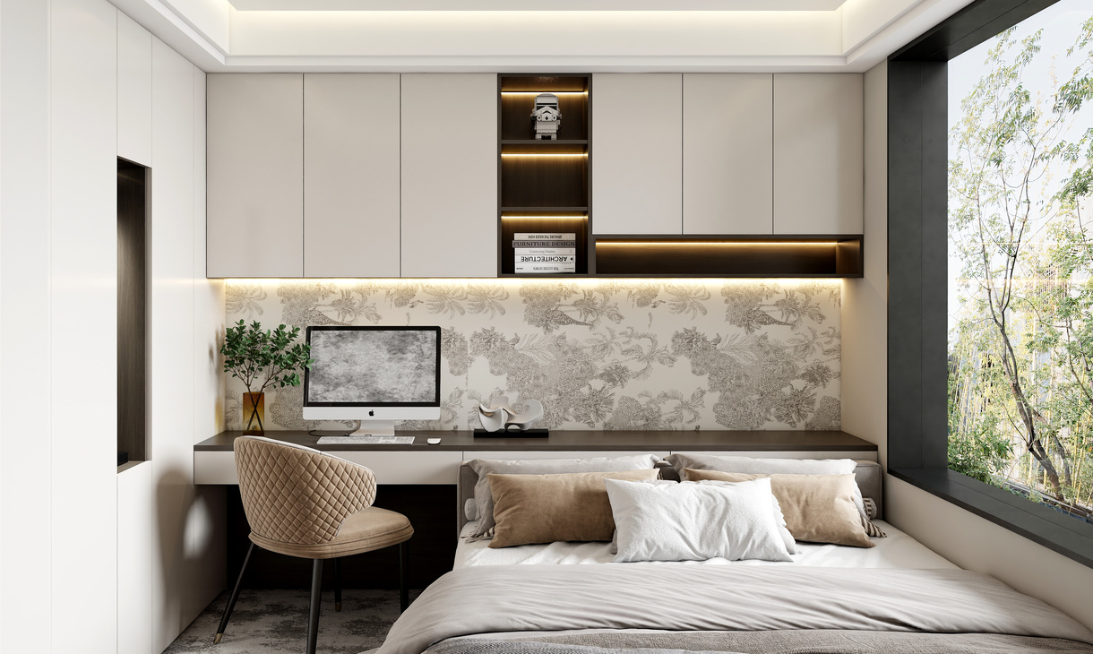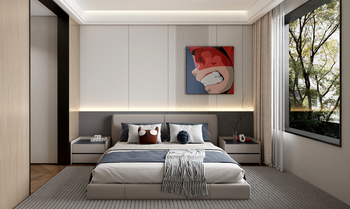 简约而不单调的色彩,让清新味道更浓郁,轻松打造一个有品位又不失格调的轻奢卧室,选择这样的明亮家装,可以让很多生活烦恼顿时消失。卧室以模块化的构造,提供了衣柜的功能同时,也在平衡整体设计风格。