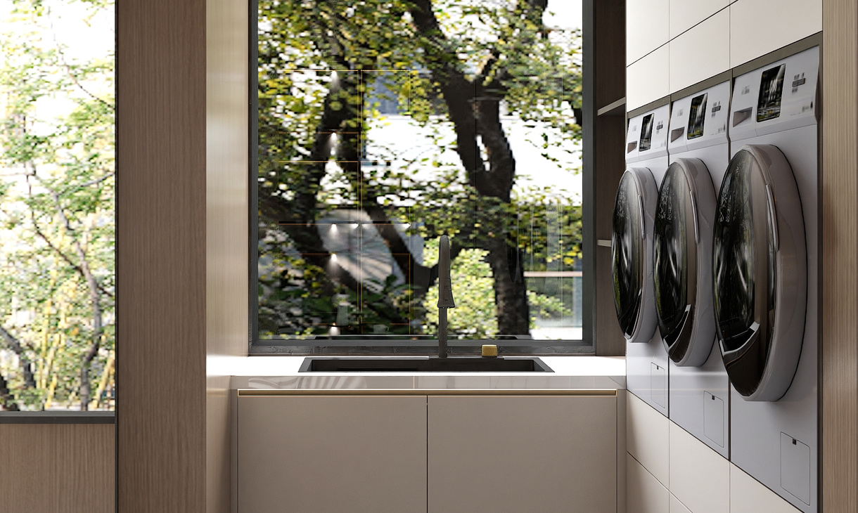 现代轻奢风格设计多使用明亮的色彩,显得很清新,虽然看似简单,但却有许多亮点,让人们感到大方舒适。家政间设计以现代风格为主,简约明亮,布局合理使空间更加宽敞明亮。