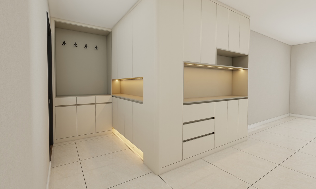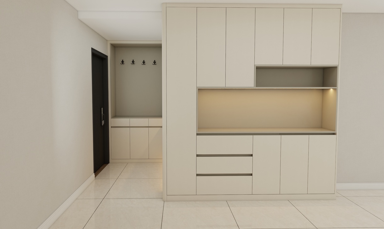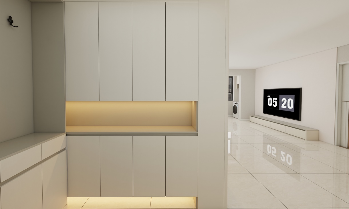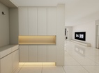 加灯,入户正对柜子两条灯,人体感应开关,酒柜一条手扫开关,共计3条灯带
