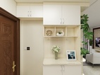 该户型为恒大精装房,无法修改格局;根据实际避免损伤原结构,简约设计风格,充分考虑储物设计,入户玄关预设换鞋区;酒格储物空间足,展示性强
