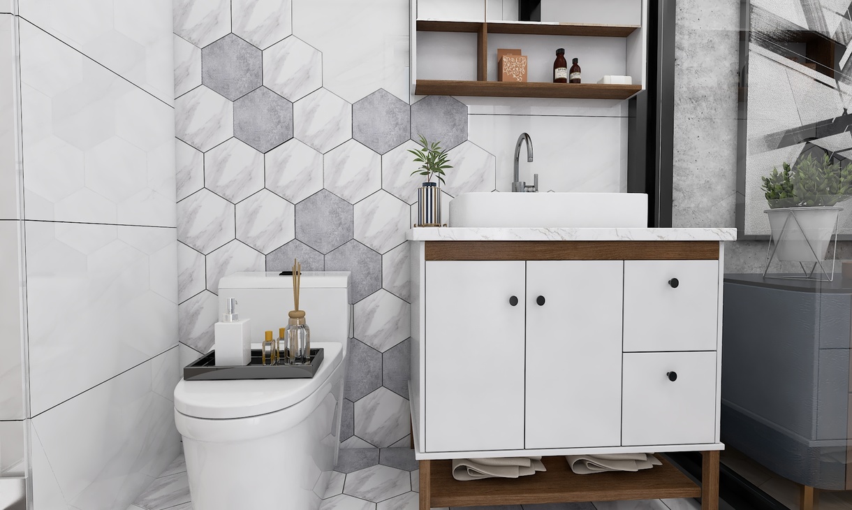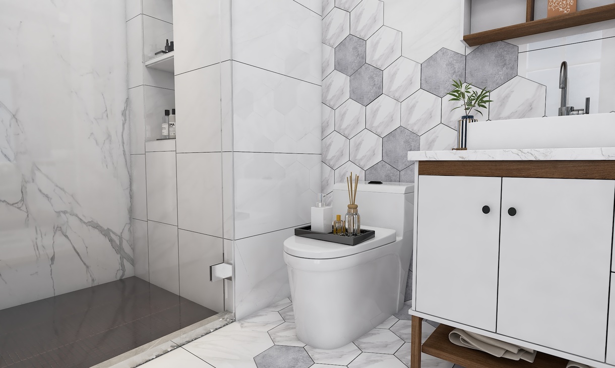 整体以白色调为主,六角砖的凸显更有味道