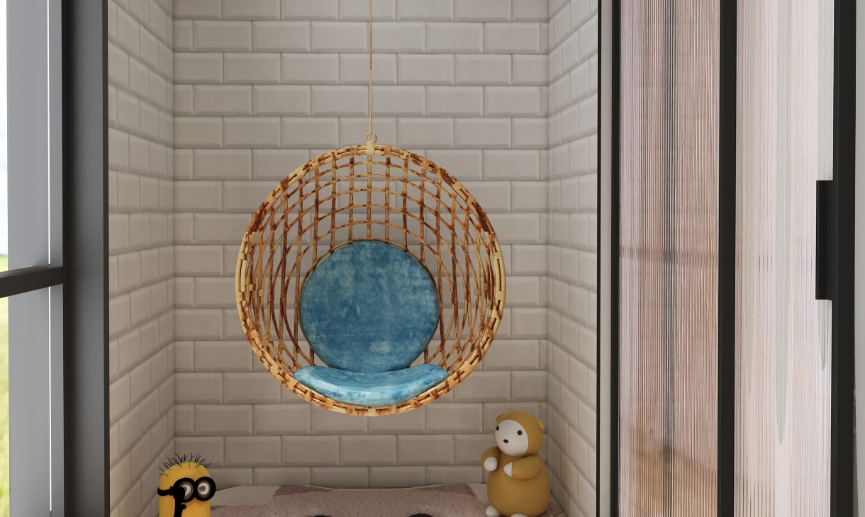 原木色木纹砖,搭配蓝色的软装,在整个素雅的空间中,让人眼前一亮