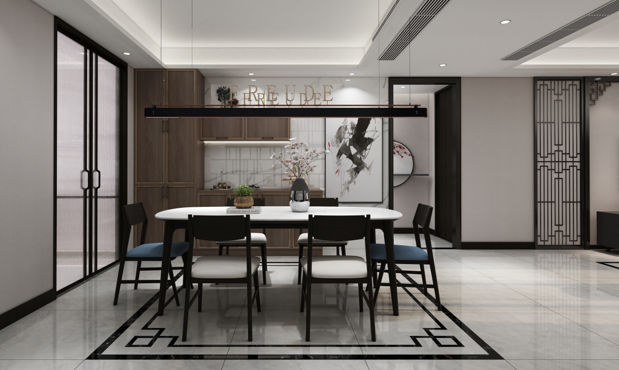 简单的新中式,搭配一些现代元素形成的客餐厅基调