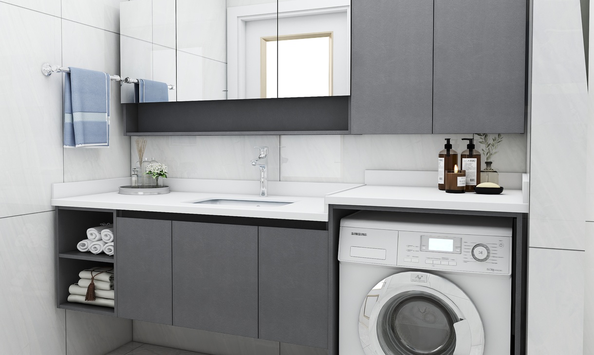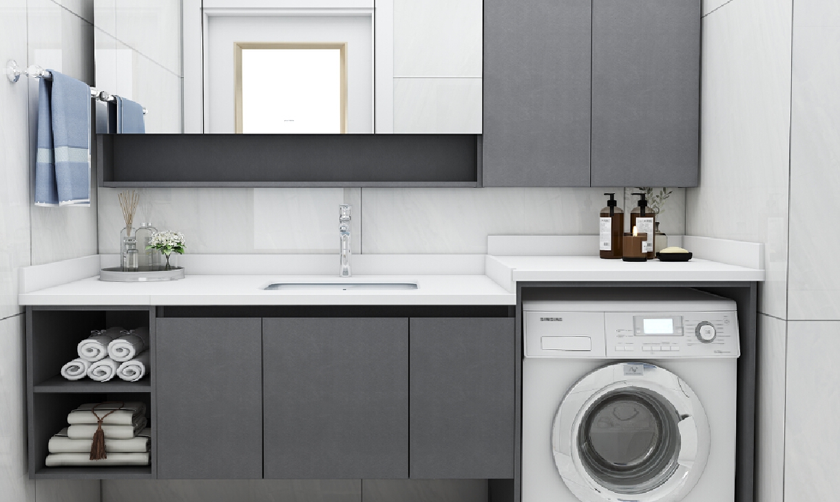 按顾客需求设计左边浴室柜右边洗衣机柜
