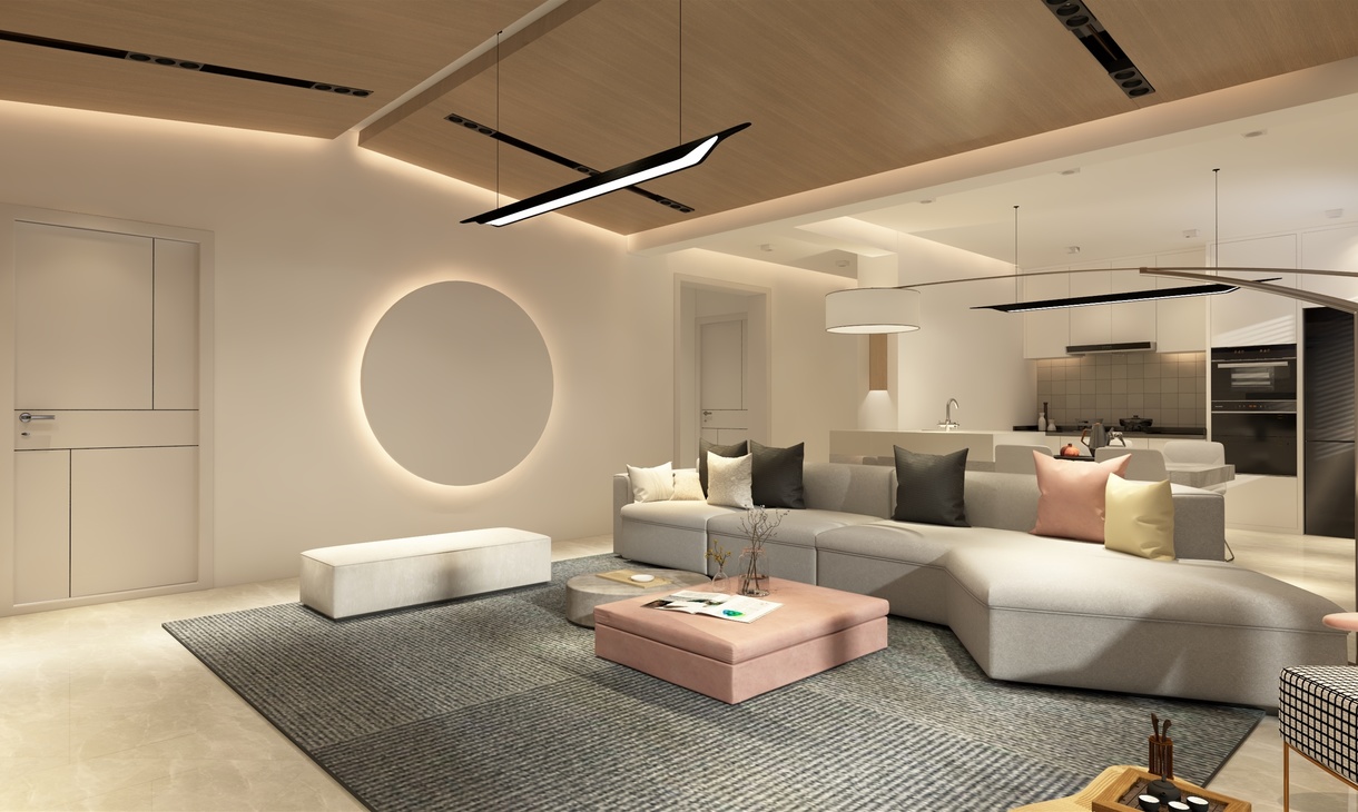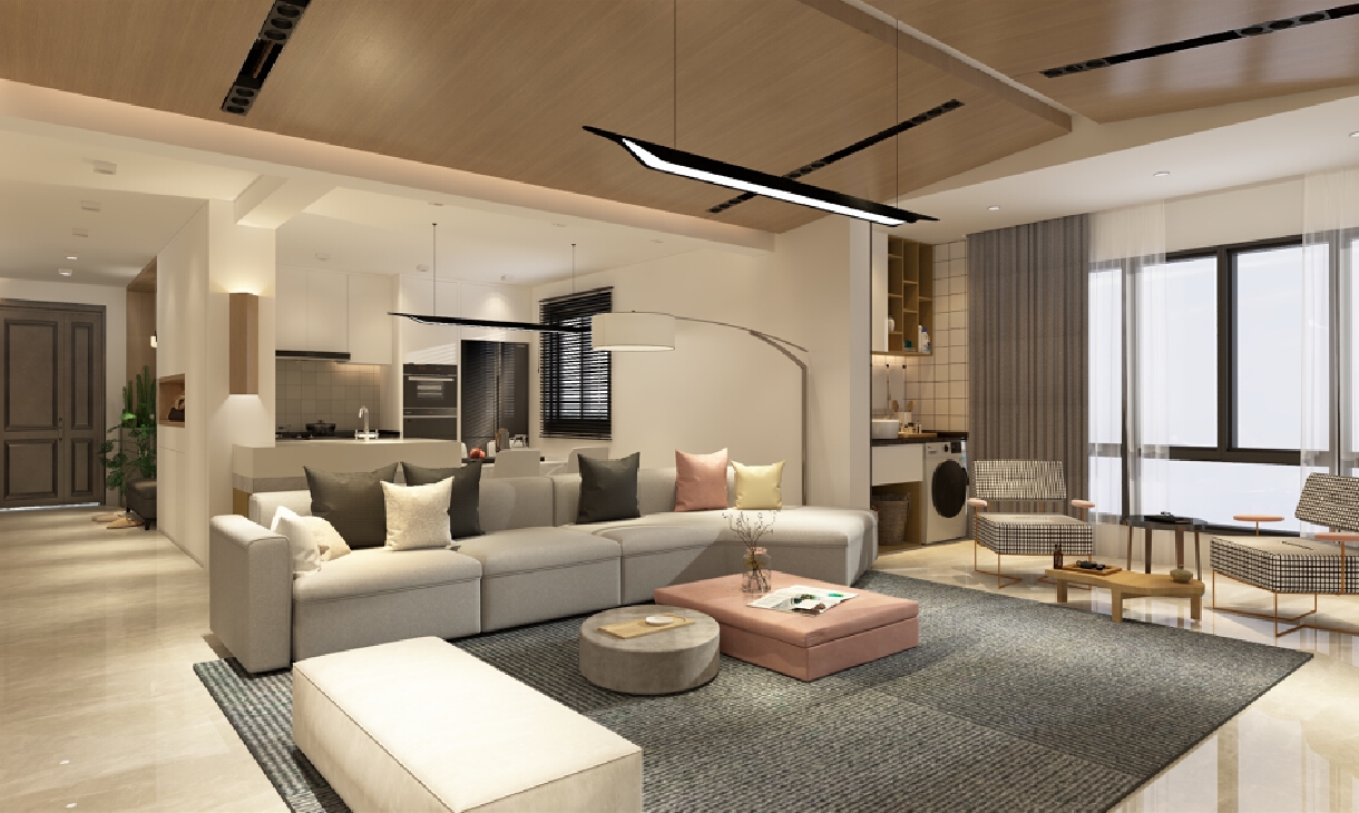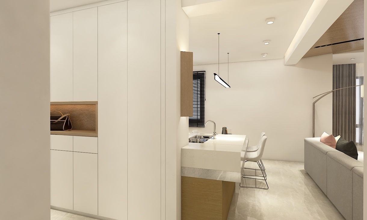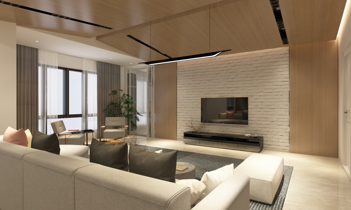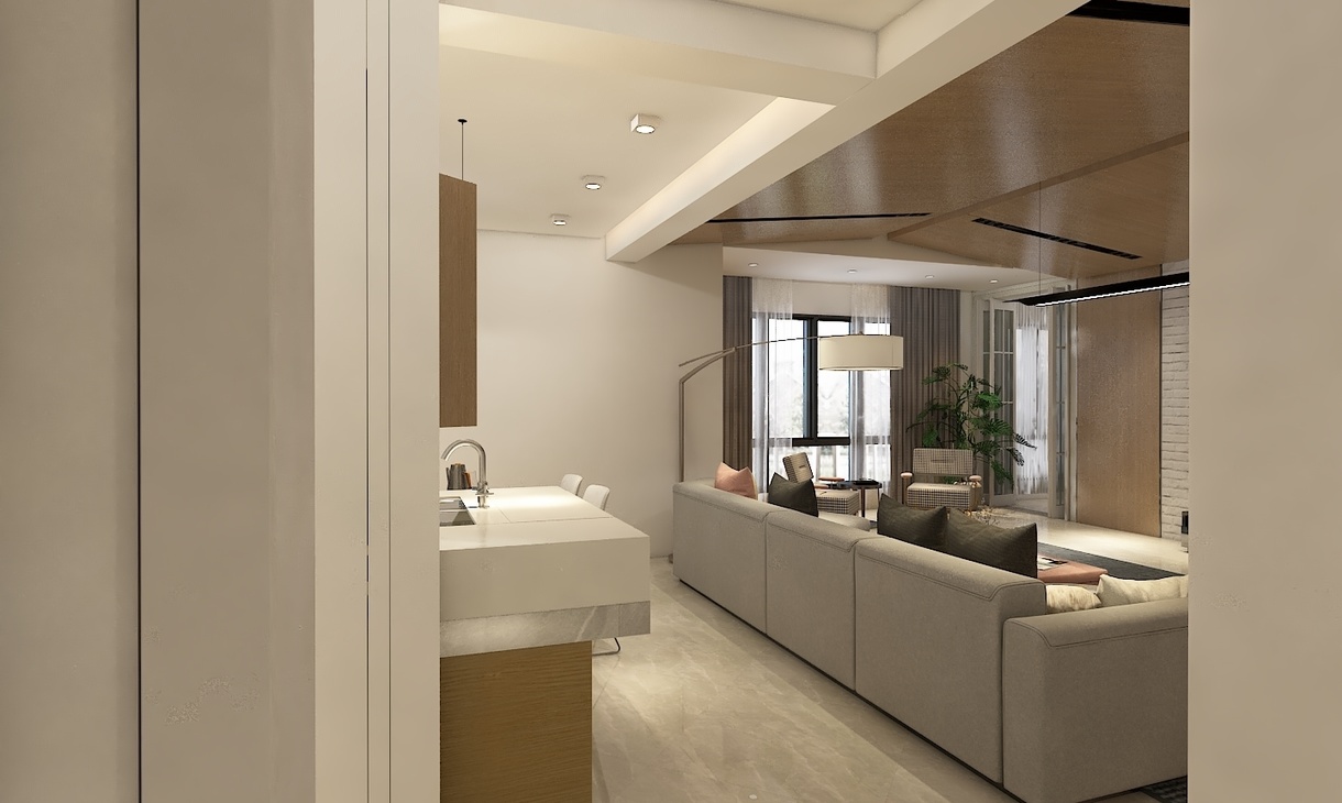 本案地址位于四会市绥江河旁的绿茵九龙湾,从室内往外看有美丽的江边景色,故取名江畔之家。业主是一对80后夫妻,与女儿和父母一起共住。也由于位于江边,也就地取材,用现代风格与自然结合的一种设计理念完成本案的设计。所以本案多以大量的橡木饰面与黑白灰色系搭配,灰粉色作为点缀色。希望能为业主带来自然而然的简单舒适生活。