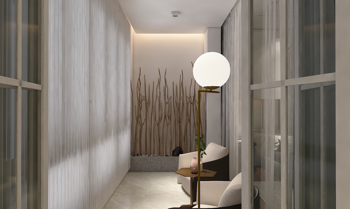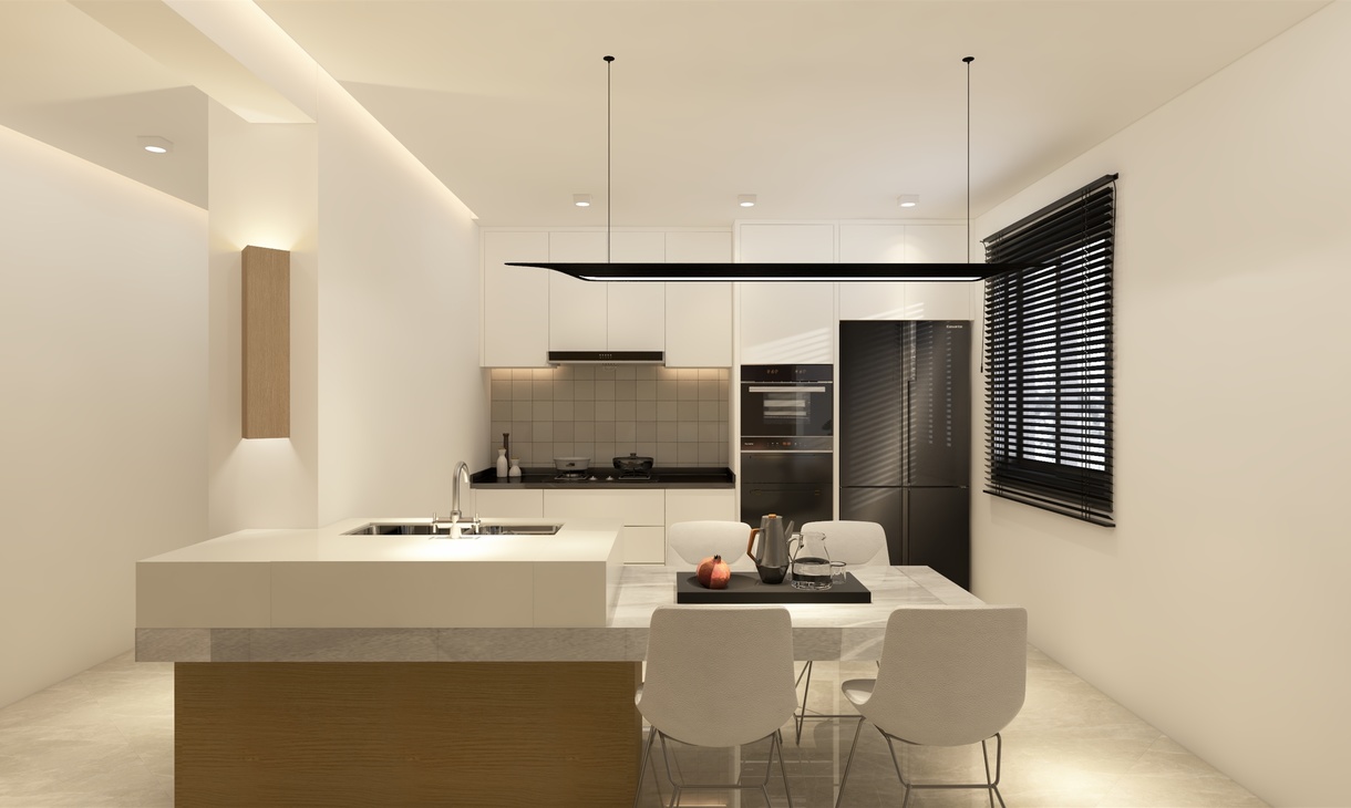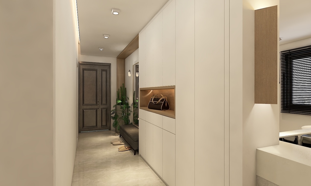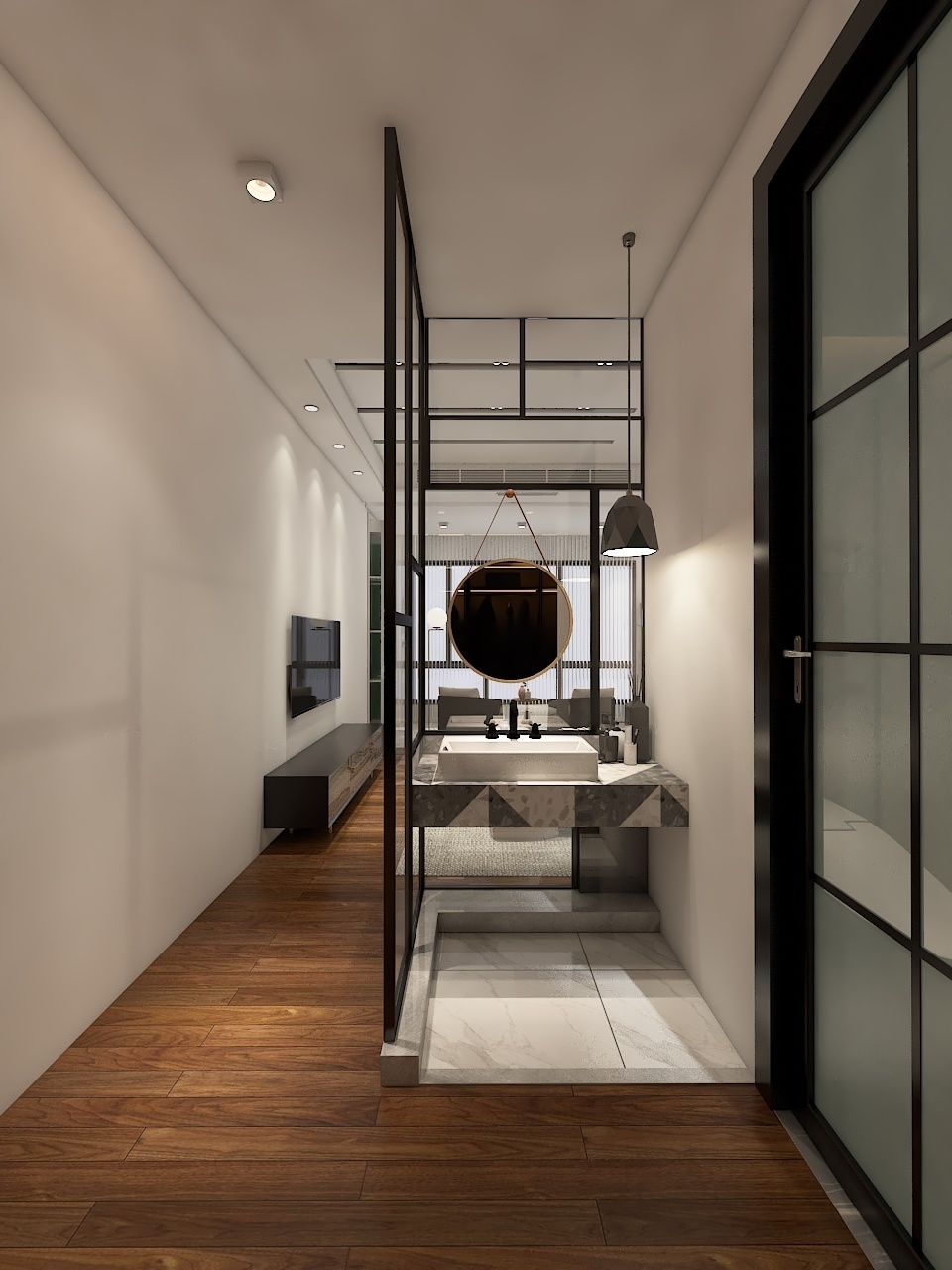 本案地址位于四会市绥江河旁的绿茵九龙湾,从室内往外看有美丽的江边景色,故取名江畔之家。业主是一对80后夫妻,与女儿和父母一起共住。也由于位于江边,也就地取材,用现代风格与自然结合的一种设计理念完成本案的设计。所以本案多以大量的橡木饰面与黑白灰色系搭配,灰粉色作为点缀色。希望能为业主带来自然而然的简单舒适生活。
