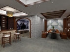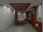 餐厅装修现代中式效果图,酒柜上美酒与艺术品交相辉映,绚烂了这个令人大快朵颐的空间。