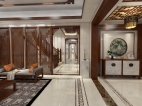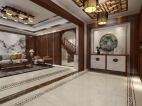 玄关装修现代中式效果图,大气而又不失精致的屏风将玄关的空间保护起来。