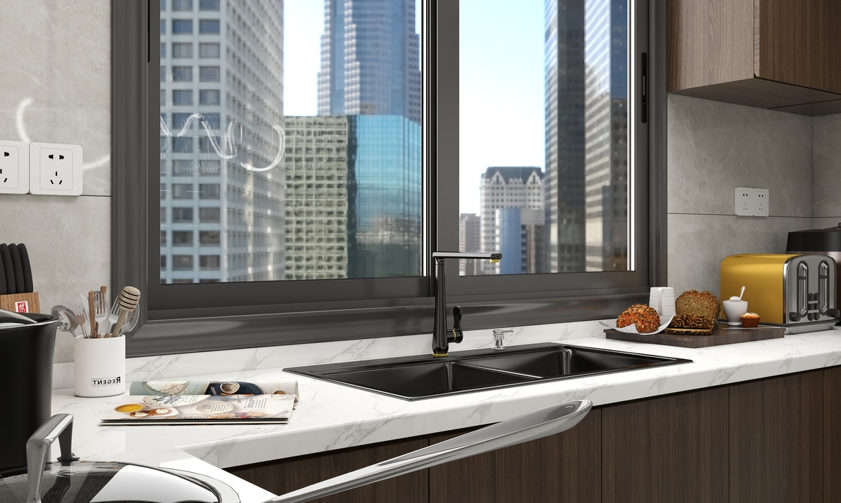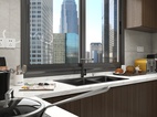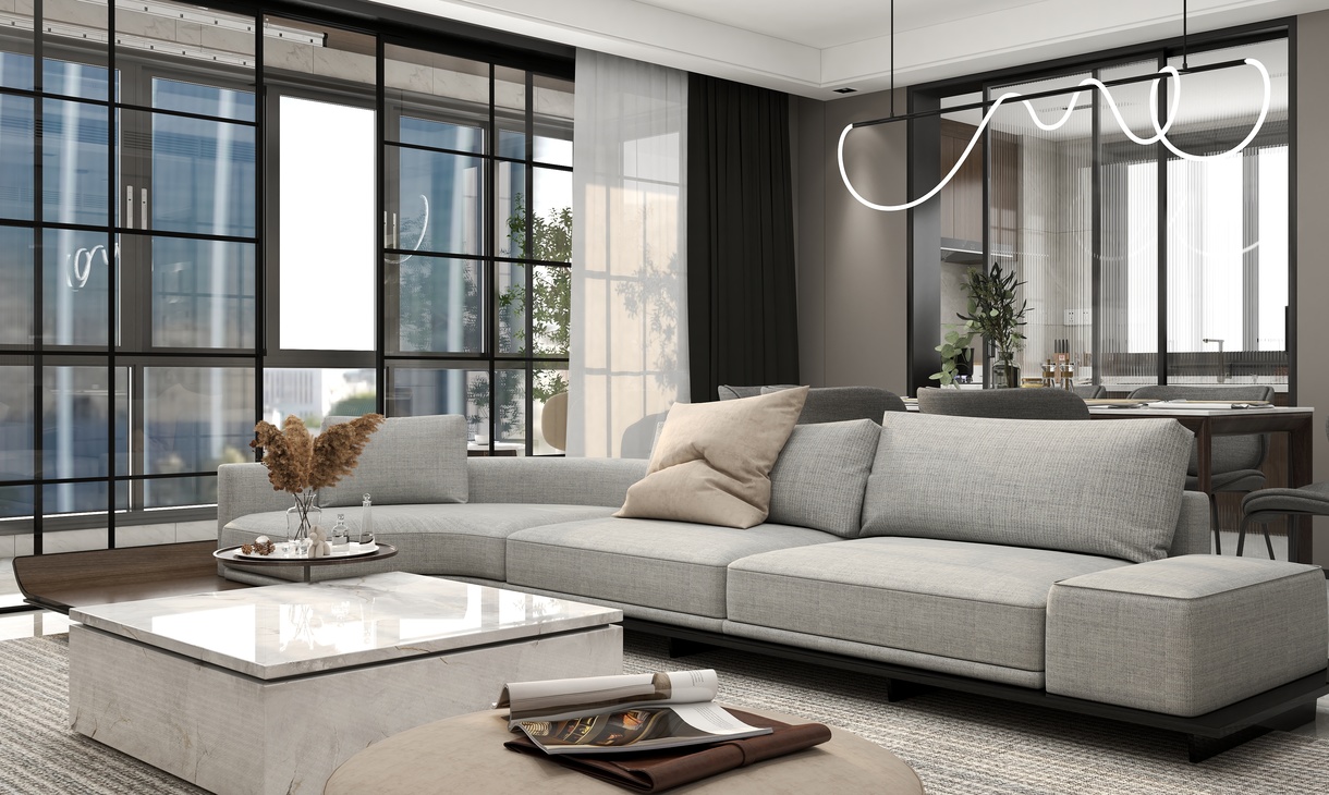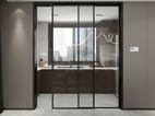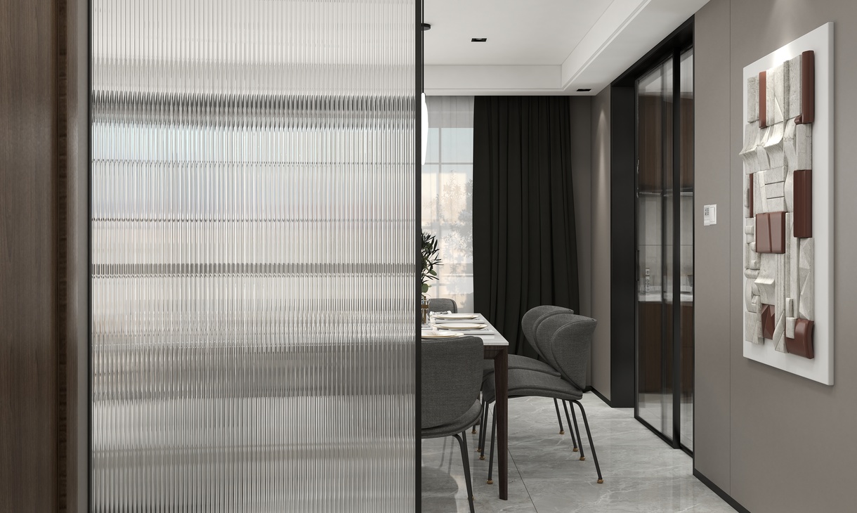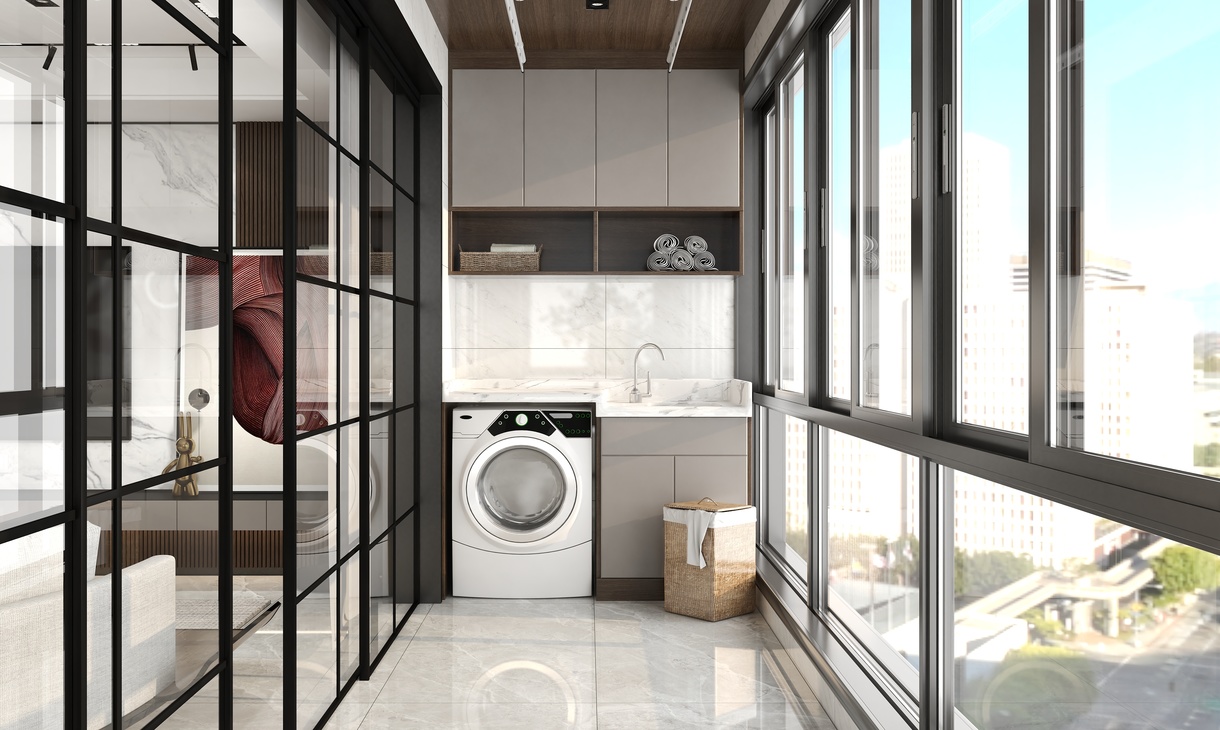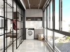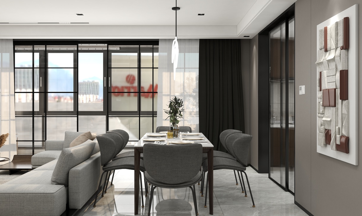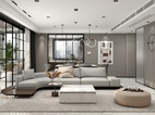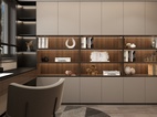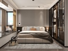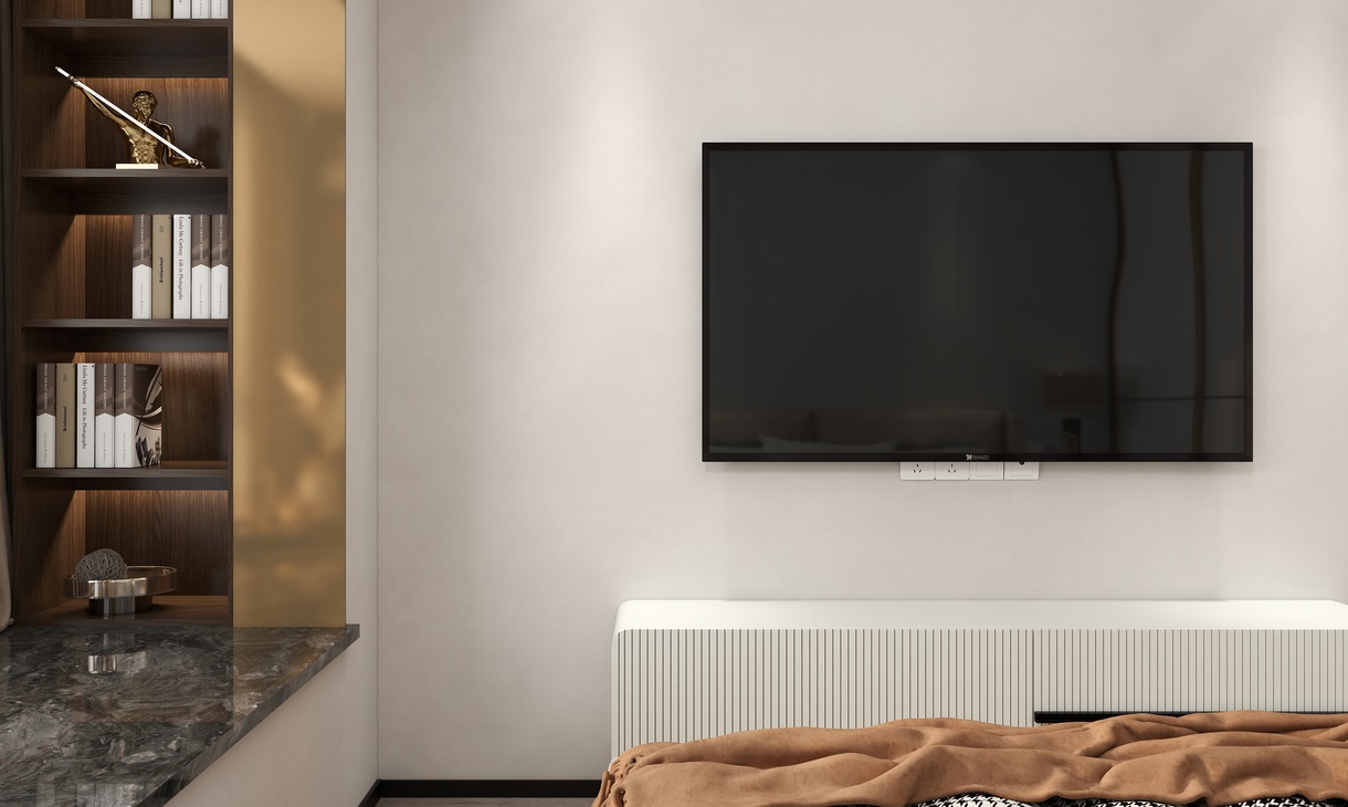 高级灰现代风设计方案。瓷砖为750*1500规格,75022#雅士浅灰。深色的柜体于胡桃木的搭配,营造出高端的质感。