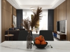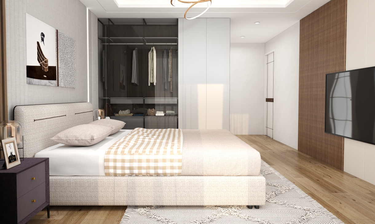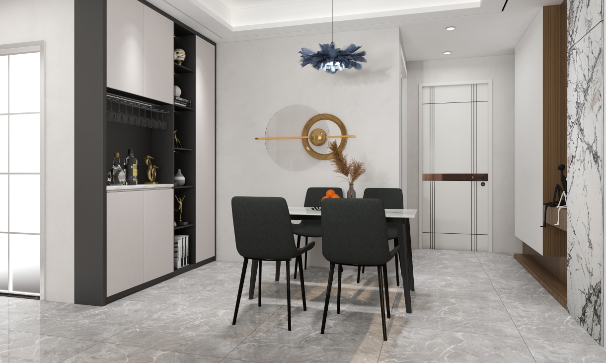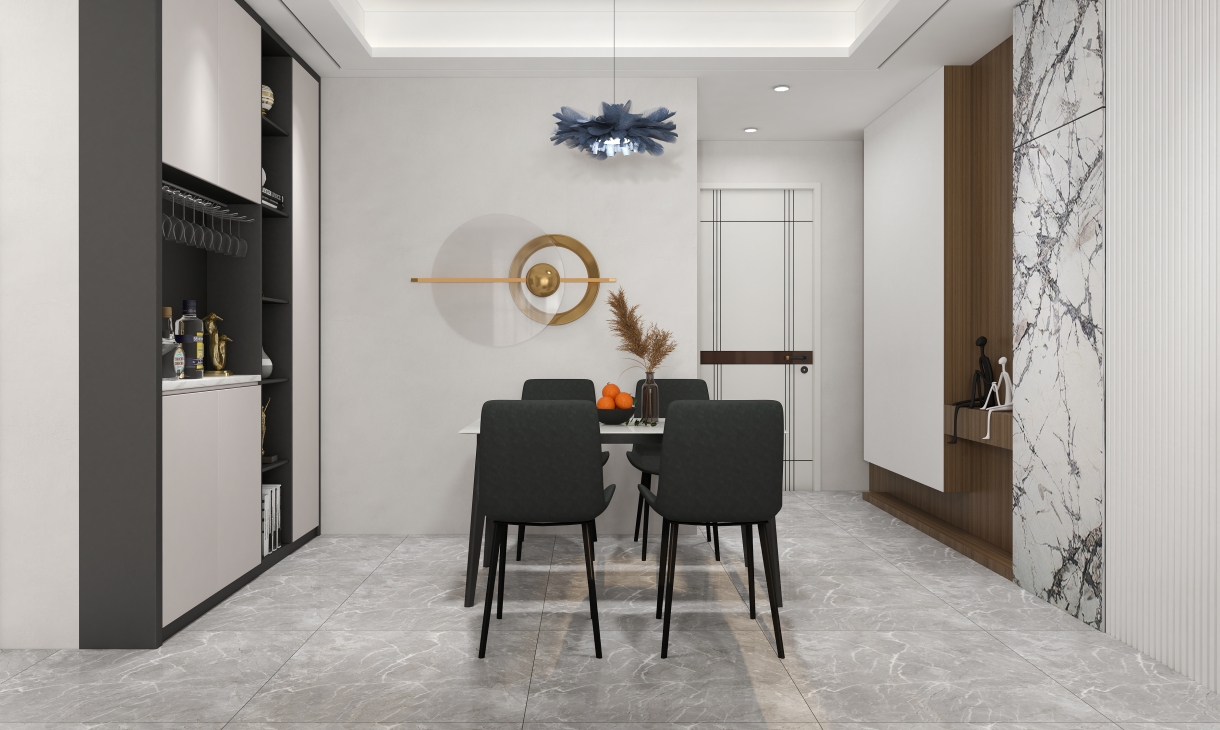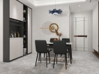 简洁的墙面线条做轮廓勾勒,搭配淡雅的色系,利用空间的色彩、纹理、家具、配饰、光线等表达空间的情绪,营造冷静淡雅的家居生活氛围。