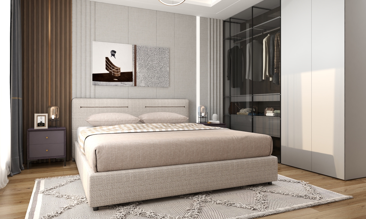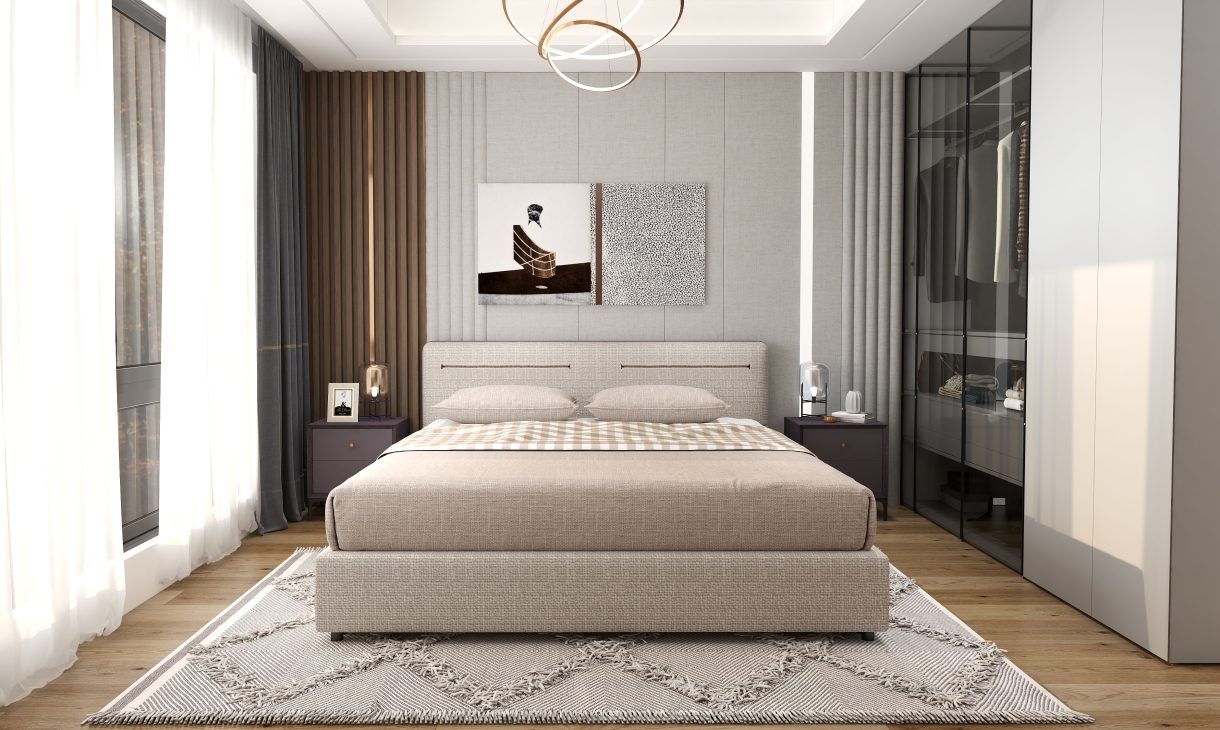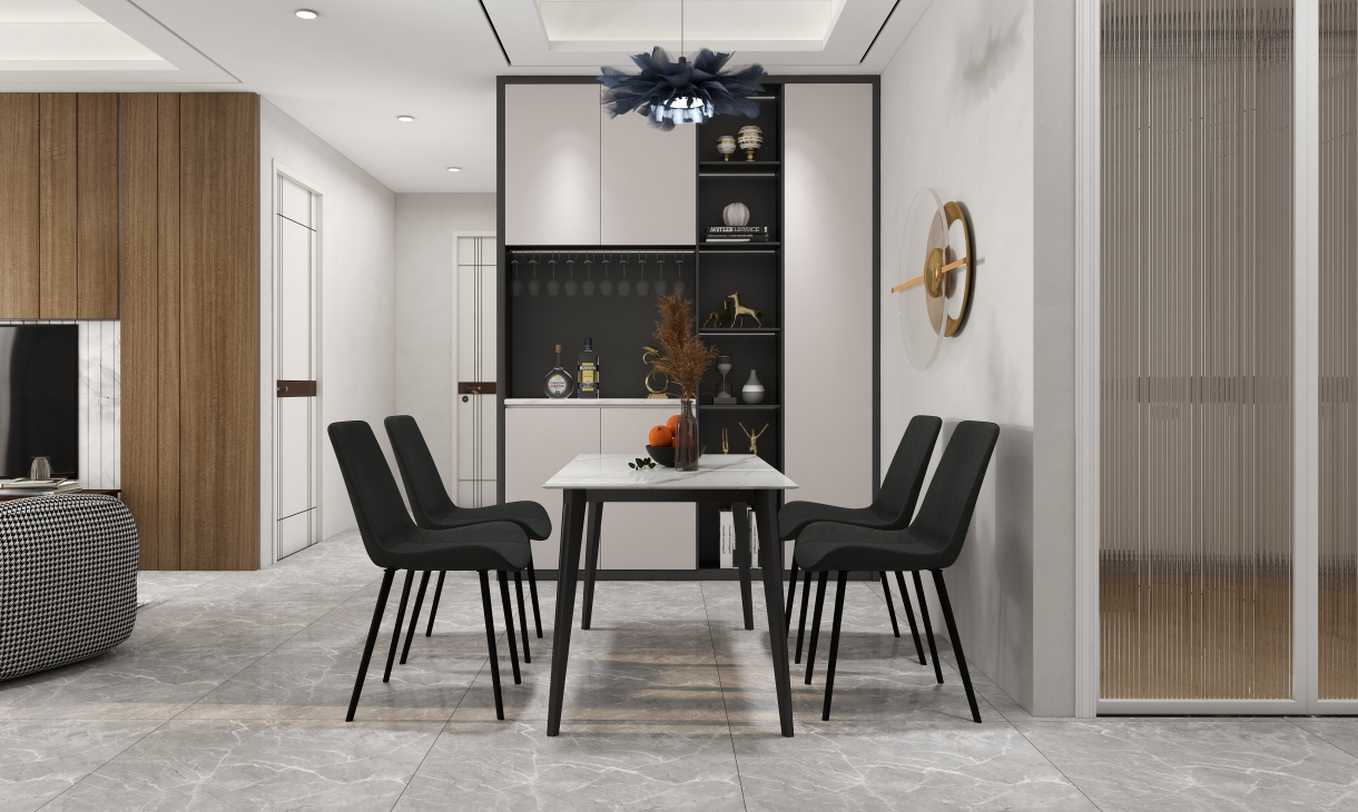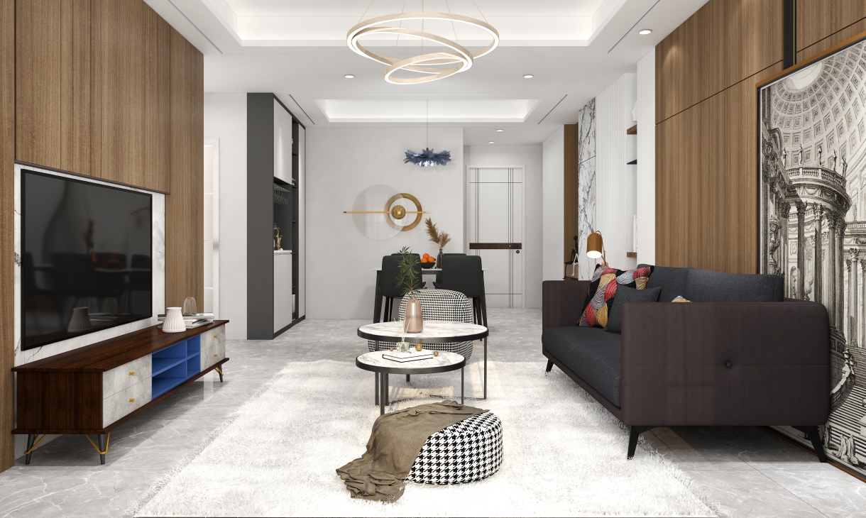 简洁的墙面线条做轮廓勾勒,搭配淡雅的色系,利用空间的色彩、纹理、家具、配饰、光线等表达空间的情绪,营造冷静淡雅的家居生活氛围。