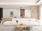 快节奏的都市生活,让我们更期待一个零负担的居住环境。 房子是标准的三室两厅户型,设计师以原木色+灰白为基调,部分墙面选择肌理质感丰富的艺术涂料装饰,再辅以绿植作点缀,打造阳光满屋,自然感十足的现代简约风格。