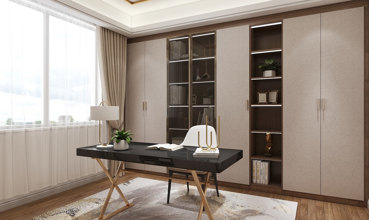 书房的空间整体简洁安静,书柜里除了平时业主经常看的书以外,也是一个收藏和展示的好地方。这里整齐的摆放着业主多年来收藏的一些文艺品,珍藏着美好的童年记忆。