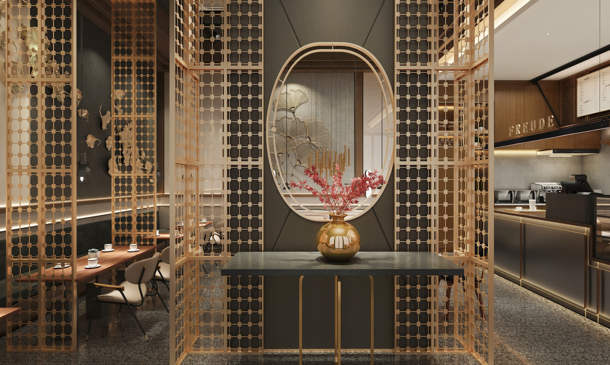 在幽静的空间里灯光被凝练的使用,让顾客的注意力重回到食物与咖啡的本身,漫射的光线可以照亮轮恰似剧台的演绎,与觥筹交错的音乐愉悦感官,在整体设计上把咖啡厅尝试如何与传统印象建立联系,并保持距离,以及更接近新的年轻的消费群体