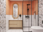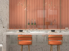 卫生间的设计,简约个性的格调,更是将这一氛围渲染到了极致,橘色温和与神秘灯光犀利而有力度。