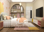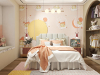 儿童房,鹅黄色的墙面与软装点亮了空间,使空间显得更加俏皮与可爱 。