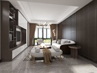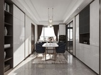 方案为现代轻奢黑白灰色系。 风格简约中融入金属元素,缔造简约而奢华的感觉。 客厅厅柜既有展示区又有大量存储空间。 餐厅高柜实用而美观。 书房榻榻米与衣柜结合形式增加储物空间。 整体色调沉稳而舒适,简约又不凡。