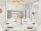 客厅区域地面采用了水刀拼花设计,白色,米色砖来搭配,营造温馨的,却不失豪华的感觉。吊顶采用了圆弧设计,让家里更具有特色。客餐厅墙面采用了大面积的木饰面设计,白色的线条搭配,让白墙更具细节特色。玄关鞋柜为矮柜设计。主要是想视野更加开阔一些。也考虑到旁边开门时候的感觉。更加的舒服一些。