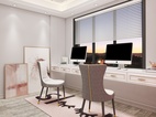 书房设置平行摆放的书桌以及柜子。中间保留大量的空间,这样书房就可以容纳更多人办公娱乐了。