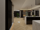餐厅看似各自独立却又连贯而紧密相关,准备佳肴的同时,给予了家人更多精神上和言语上的交流.