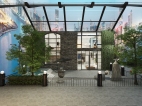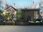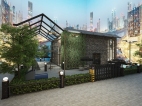 宁静的的户外别院俯瞰喧哗的城市风光