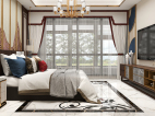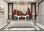 主卧,整个空间绝不是家具之间的简单堆砌,方圆之间可见因景互借的韵味,墙上的山水画饱含诗情画意,置身山水之中也。融入东方禅意哲美,轻漾出一片涟漪的水纹与山石布局无限通达心境况味,是乍见之欢的视觉感染,更是久处不厌的灵魂陪伴。