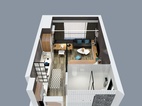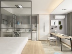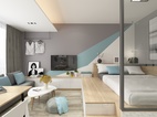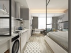 现在的年轻人对于小公寓的需求越来越多,要求也越来越高。本案把入户的功能性大大提高,出行,梳洗,洗衣,烹饪等融合在一个区域。 榻榻米,电视柜,沙发,卡座串通着起居室的整体功能性,黑白灰的主色调附蓝色点缀穿插,自然的原木色,营造一个舒适,个性的居住空间。