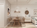 原木色是空间的主色调,营造整体温暖包容的氛围,虽是方寸之地,却有了坐看云起云落的心境。客餐厅之间无明显的隔断,沙发旁边的边几,即为客餐厅的分隔,也让两个功能区之间形成联系。