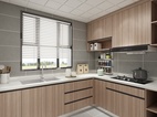 仿古砖材质的整体厨房灰色瓷砖贴墙,清爽整洁,干净利落,也会给下厨的人一个好的心情。