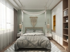 次卧使用了黄色是大自然的颜色,木制床头柜和木床,又给整个空间增添温馨。