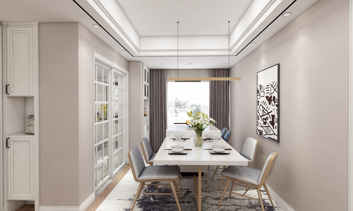 本案设计呈现的是现代混搭风格,简单优雅、质朴不失格调,每一个线条的背后,每一处设计的内涵,似都有着许许多多的故事,淡雅的空间背后反映出都市人对低压生活、休闲生活的追求,打造了一个宁静舒适的家庭,永恒的魅力优雅的氛围,灰色,米色和白色的色调,很好的诠释了质与感并存的自由家居时尚的配饰,自然的风格和温暖的灰色调。