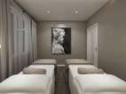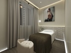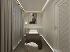 单人美容间属于私人空间,整体设计上更加是追求简洁舒适,因此采用了比较简单的平顶设计和背景灯线处理,而墙面装饰画的凸显是避免白墙的单调。