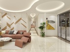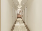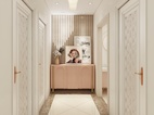 过道的长度有11米,为了营造一种舒适感,吊顶采用了波浪形,地砖采用菱形铺,形成“天地呼应”,而过道的尽头是用木塑板和灯线结合的玄关背景,灯线成形,与装饰画相辅相成,让整体视觉和谐统一。
