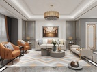 日益丰盛的生活中,喧嚣与忙碌交织不停,将空间打造成具有认同感的精神领地,成为居住者生活上舒缓精神的主导者,令设计的艺术美融入环境,令体验带动居者享受生活的闲雅与安适”,这是设计师赋予该项目软装设计的格调与定位。 选用灰蓝色的极简欧式护墙板搭配白色石材背景墙、水波纹理石饰面来定义空间的清雅柔和,雅致的橙色与皮革轻轻地挑起空间的韵律美感,搭配花艺,空间附着着一层恰到好处、不过于浓郁的浪漫情调。阳光透散过微透的纱帘为空间染上一抹暖意,令人们不觉沉溺于韶华中的闲适与安缓。