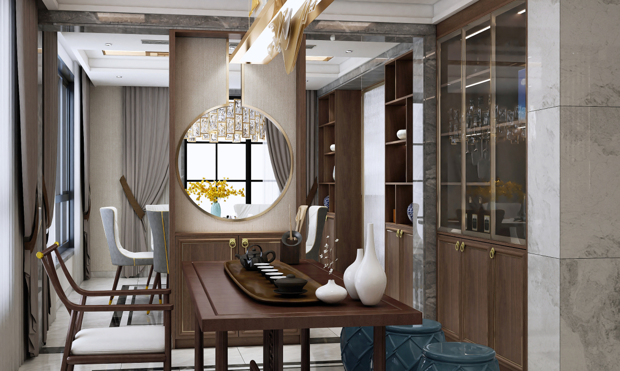 1.业主喜欢中式风格,但在装修风格上不想太多复杂的中式元素。所以在定位是我们选择新中式风格。2.女主人思想穿着打扮都是是比较新潮。所以在配色上为了迎合女主人的喜好,我们在软、硬装上面我们加入了轻奢元素。造型、颜色都是比适合这个年龄段的女主人。