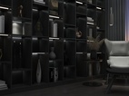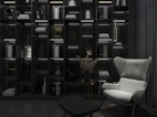书房选用了奥地利原装进口的爱格板钻石灰,时尚高级的主基调,一柜到顶的整墙书柜,大小不一的格架设计,兼具功能、特色与美观,打破了传统沉闷的单一的设计,满足居住者收纳藏品及藏书。