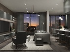 餐厅与客厅、厨房呈开放之姿贯连,将空间尺度拉升到极致,含蓄内敛的古铜、吧台高贵典雅的德赛斯雪花白石台、光泽细腻的皮革,厨房自然温润的烟草格莱斯橡木、通透的睿系列玻璃门、简洁大气的空间,时尚有格调。