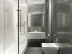 卫生间干湿分离,简约的镜子与经典的时尚色调高级灰、crystal陶瓷白融为一体,简约而清爽的格调与空间感,洗去一身的繁忙疲惫,让身心倍感温暖。