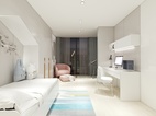 儿童房设计师以欢乐、活泼为设计基调,空间采用大量的铂金白、陶瓷白,高光的可见面原材料将空间视觉扩宽,简洁明亮的空间色调也更好的让孩子成长。