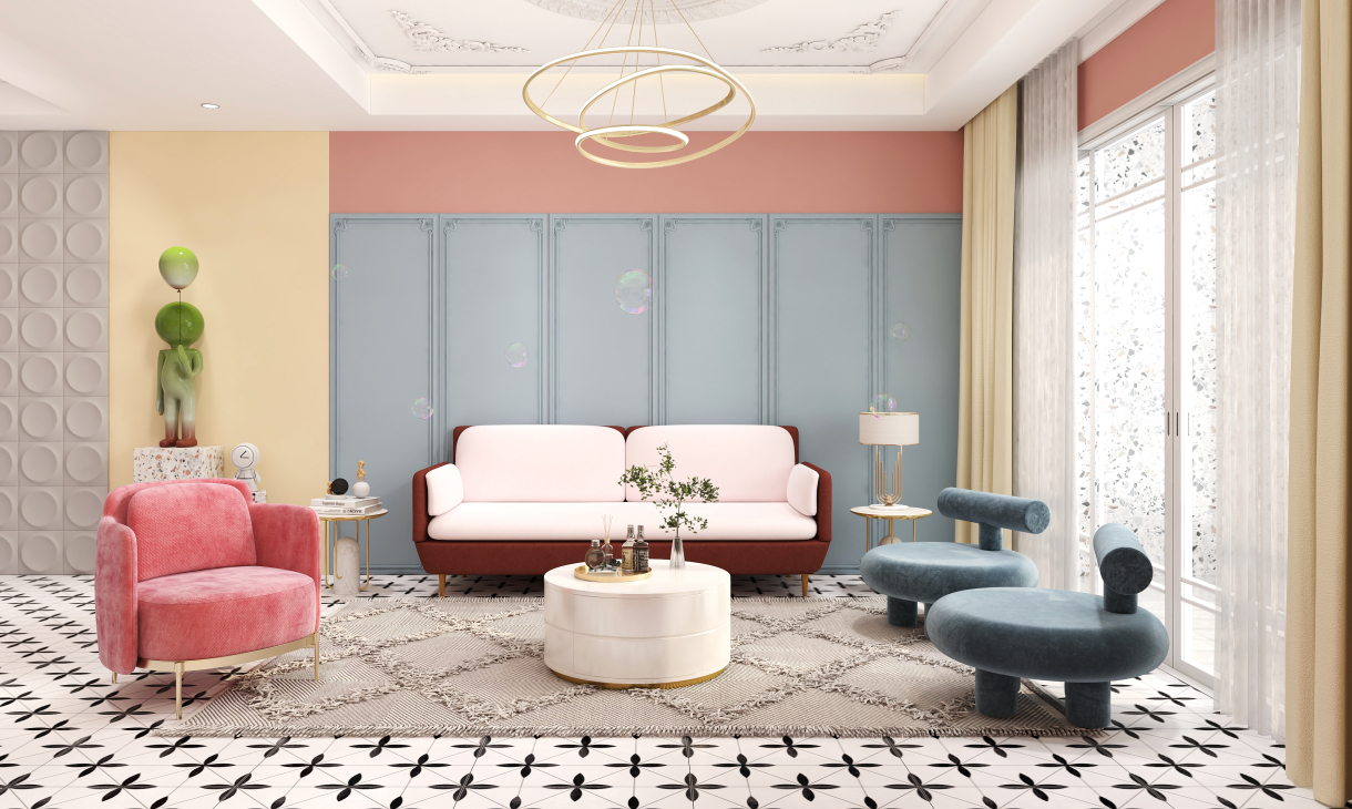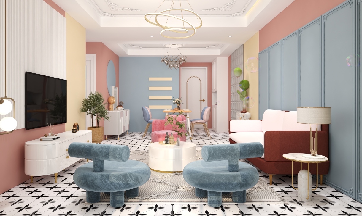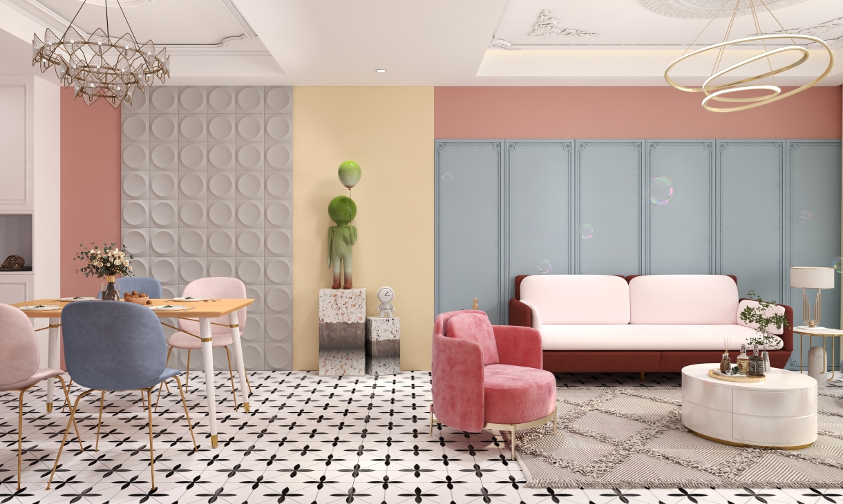 马卡龙色调的家居 是温柔的臂弯,将你拥在怀中 明媚柔和的清爽色彩 让人忘却世尘的烦躁,尽享清净与甜蜜。