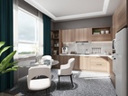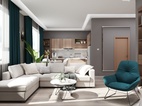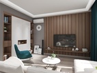 低调内敛的米灰色布艺沙发搭配沉静的墨绿皮质休闲椅,营造优雅而内敛的空间氛围,大理石茶几及黑色茶几腿的加入,缔造出优雅舒适的家居质感。整个氛围如室外穿透纱帘的阳光那般柔和,沉浸其中,精致的气韵在此间静谧地生长。
