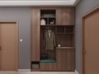 推门而入,一个干净利落的灰调空间,柔和,沉稳、安静,呈现宁静雅致的氛围。增加了内嵌玄关柜,既实用又美观。