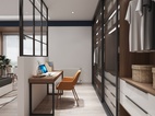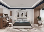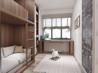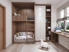 到顶的衣柜绝对足以满足日常收纳,书桌与衣柜一体的设计,节省空间的同时让主卧兼顾了阅读、工作的功能。
